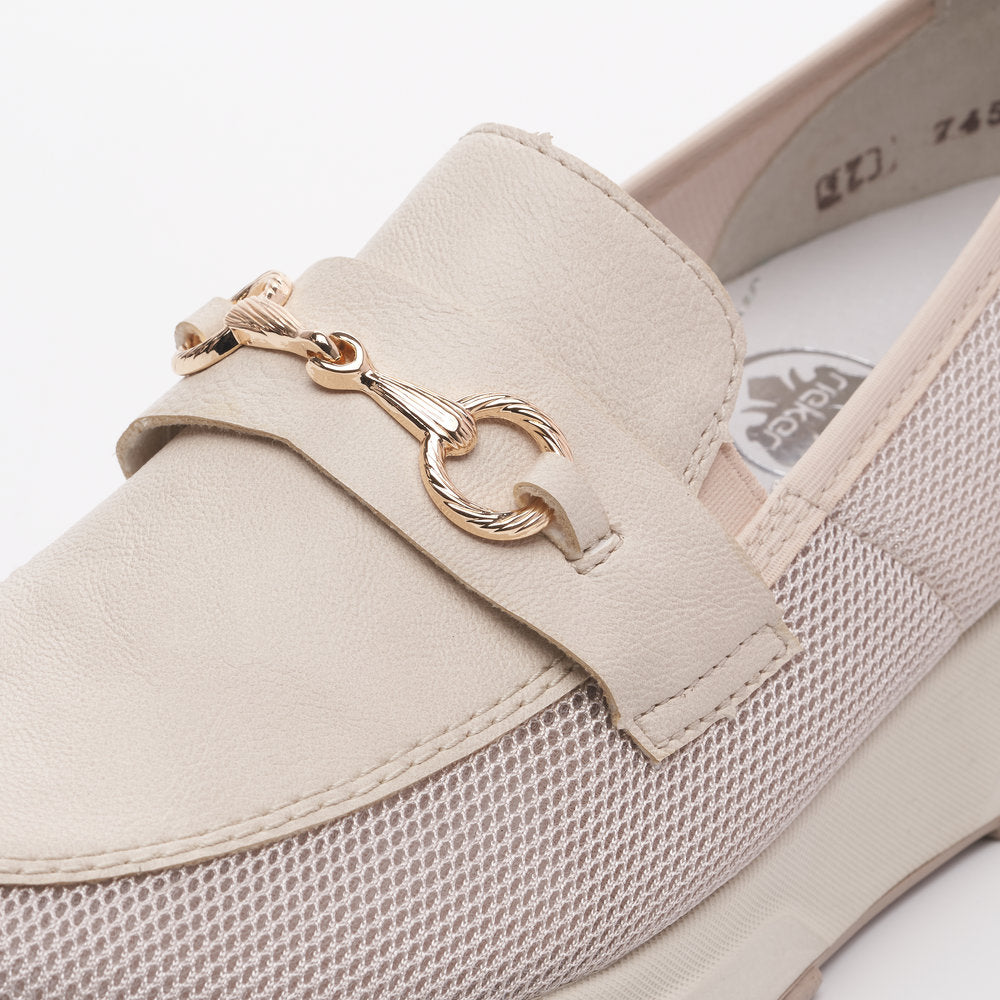 Rieker N7455-60 Beige Combi Slip On Moccasins
