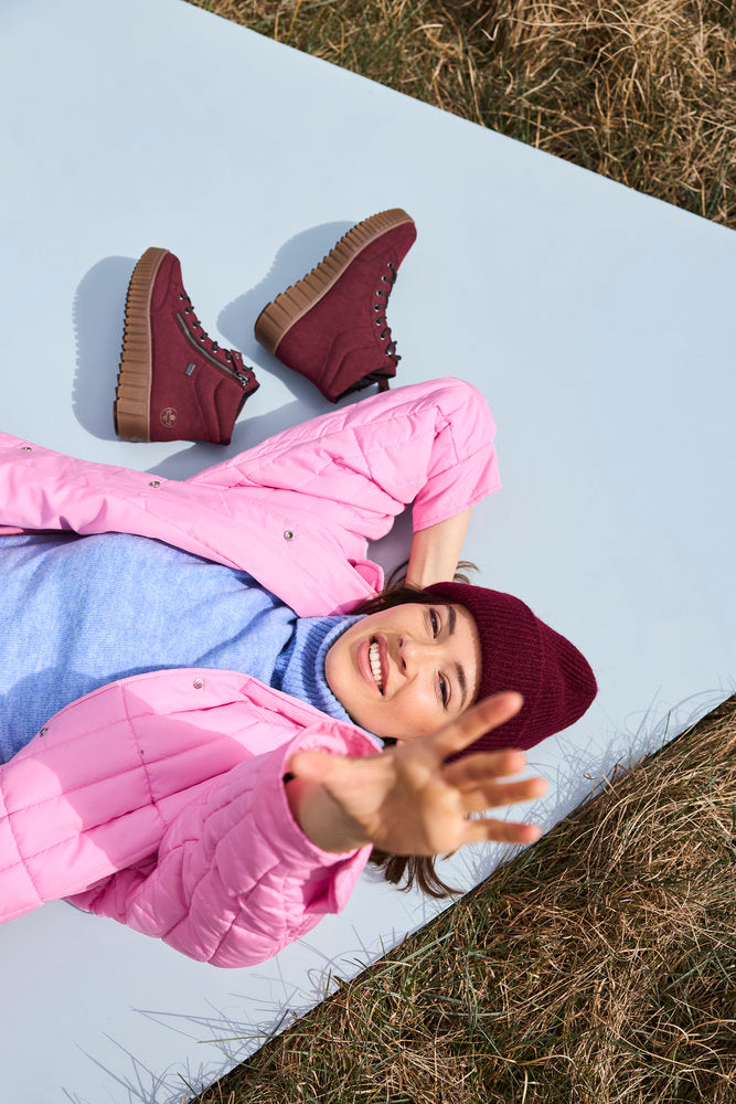 - Rieker TEX Y6104-35 Burgundy Ankle Boots with Lace & Side Zip